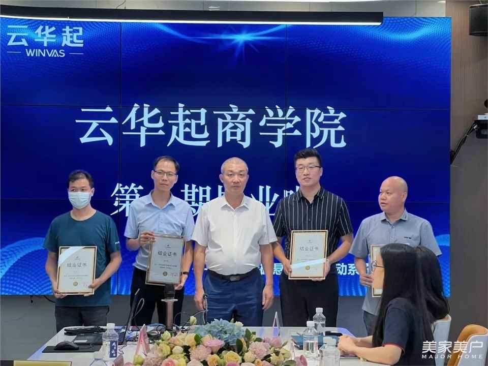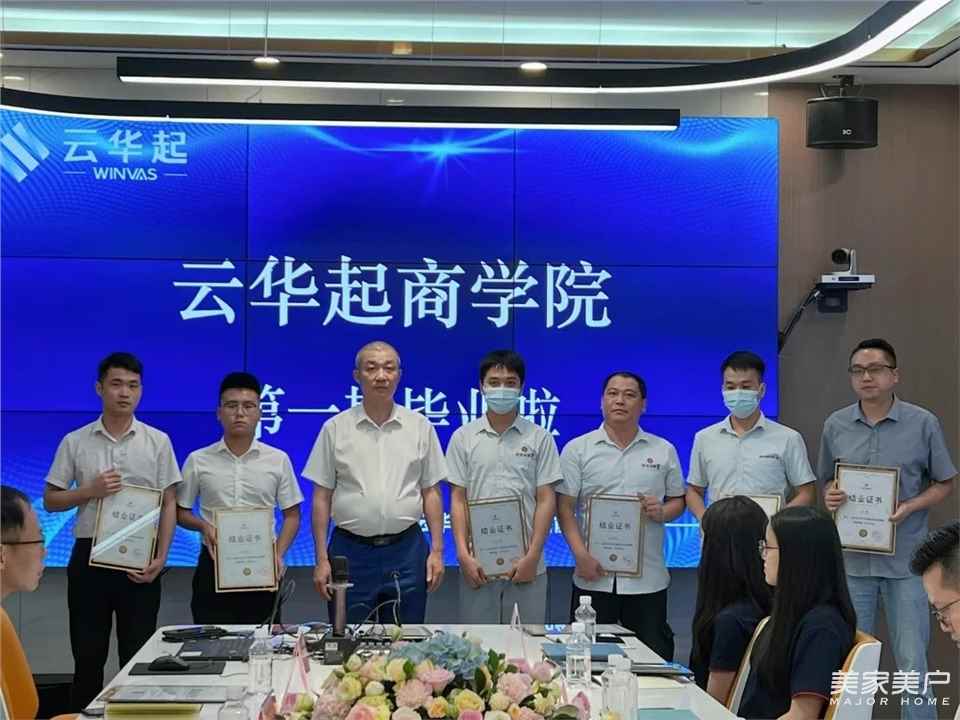 丰富的培训内容,仿佛让时间也加快了脚步。不知不觉,培训课程接近尾声。学员们顺利通过培训。梁焕新总经理为参会的学员们颁发了结业证书。在热烈的气氛中,云华起商学院第一期落下帷幕。