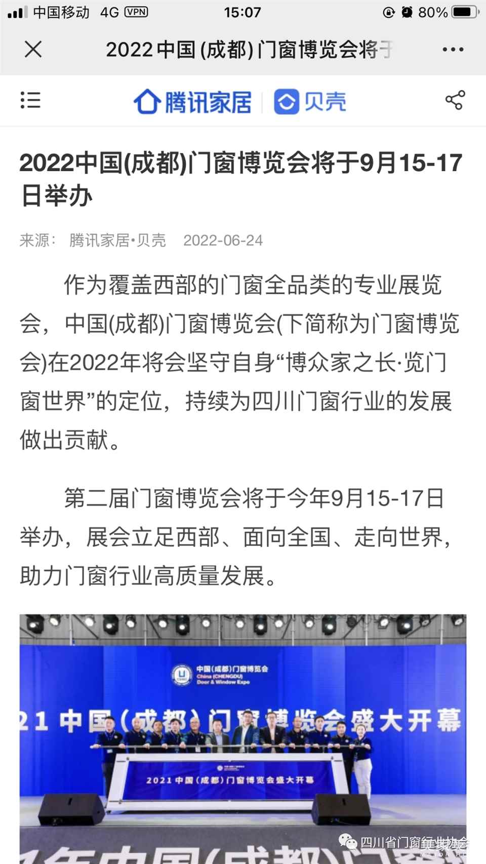 2022中国(成都)门窗博览会将于9月15日—17日举办,展会将立足西部、面向全国、走向世界,助力门窗行业高质量发展。