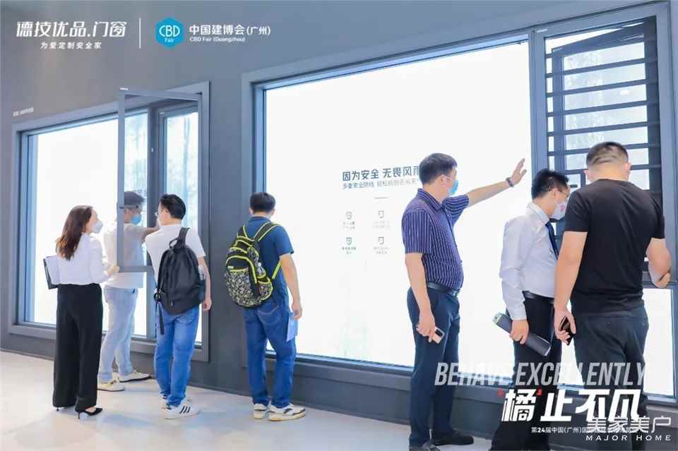 从触感细腻的维哈根抑菌执手,科学防盗的锁闭系统,隔热保温的胶条设计,隔音降噪的多道密封工艺处理,再到标配铝合金防坠绳的细节工艺……参展者通过双手可触、肉眼可见的具象细节,都可看出德技优品对安全性能和低碳节能工艺的臻致追求。