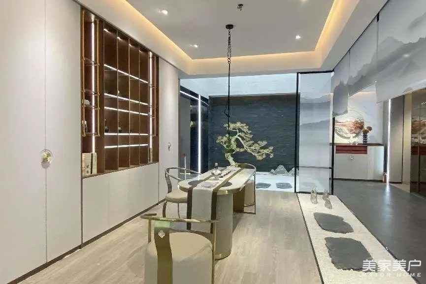 事实上,2022年筑美家居将产品定位从前期的家居定制升级为整家定制后,便提出了产品套系化的设计思维,本次展馆设计也坚持整家定制方案一体化、产品设计套系化、风格主流化等理念。