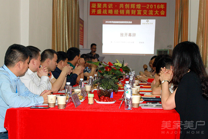 4月16~18日,以“凝聚共识?共创辉煌”为主题的2016年开盛战略经销商财富交流会在顺德总部隆重召开。开盛原木生活馆携手全国各个省区的核心战略经销商欢聚一堂,一起出谋划策,共商2016年发展大计。