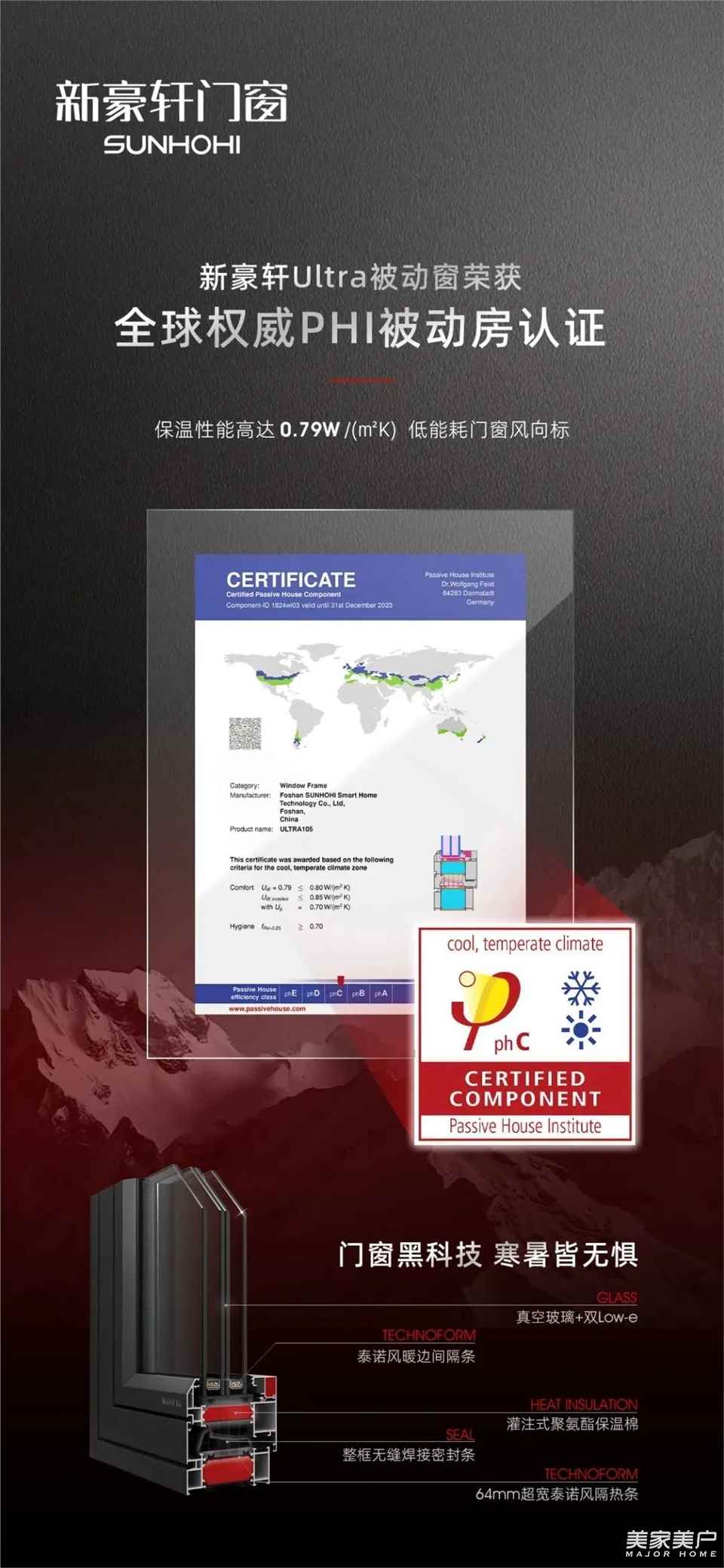 近年,新豪轩门窗更是加大产品研发投入,可实现U值低至0.79W(㎡K)的高保温性能,获得全球权威PHI被动房认证;也加强与国际优质供应商的合作,开发适用门窗的光能百叶,实现免接电源与隔热节能双效益,成就低能耗门窗风向标。