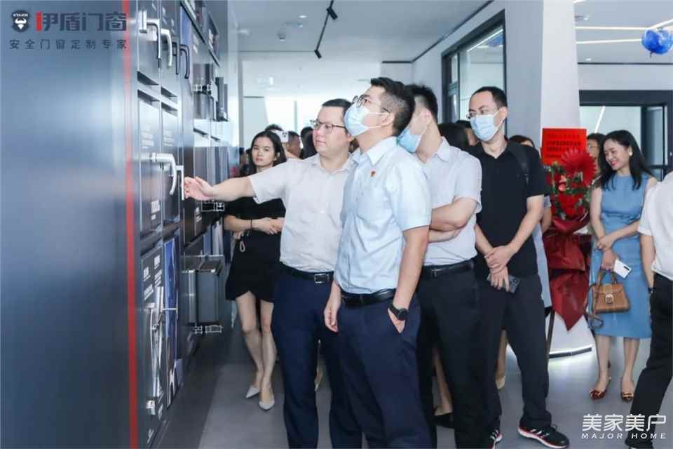 随后,中国系统门窗联盟会长潘慧玲、广东门业协会秘书长饶德亮、广东门窗协会秘书长林诚、里水智能居协会秘书长欧泽雄、牛商会会长单国喜、定制家居协会秘书长曾勇等协会大咖参与剪彩仪式。这代表着伊盾集团开创品牌新起点,共赴发展新征程。