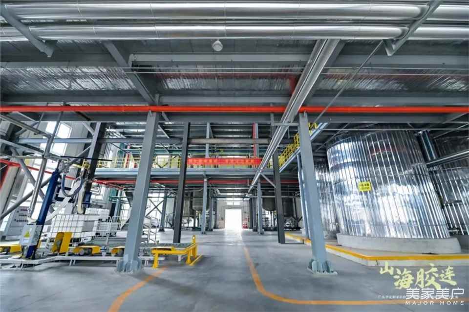 二车间为水胶生产车间,占地面积为3648平米,主要生产环保E0/E1 级改性氨基树脂胶粘剂、水性苯丙乳液、水性木器漆树脂、水性木器漆,年产能累计高达14万吨。该车间主要以先进的DCS控制系统为指挥中心,能够适时检测、监控、反控生产设施,确保工艺安全性、投料精准性、生产过程可追溯性,确保产品的质量稳定性和一致性。