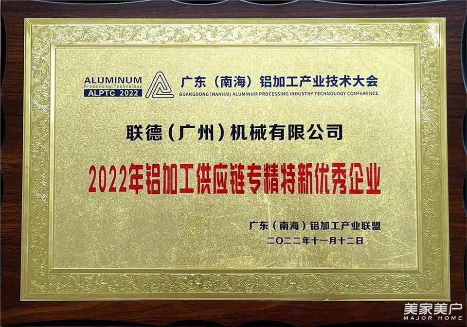 从绿色发展到数字化转型升级,联德一直坚持与时代共进,以智能创新为核心,助力铝型材行业改造升级,勇攀高质量发展高峰。这一荣誉的获得,不仅是相关领导部门、业界同僚和客户对联德的认可,更是行业和客户对联德未来发展的期待!