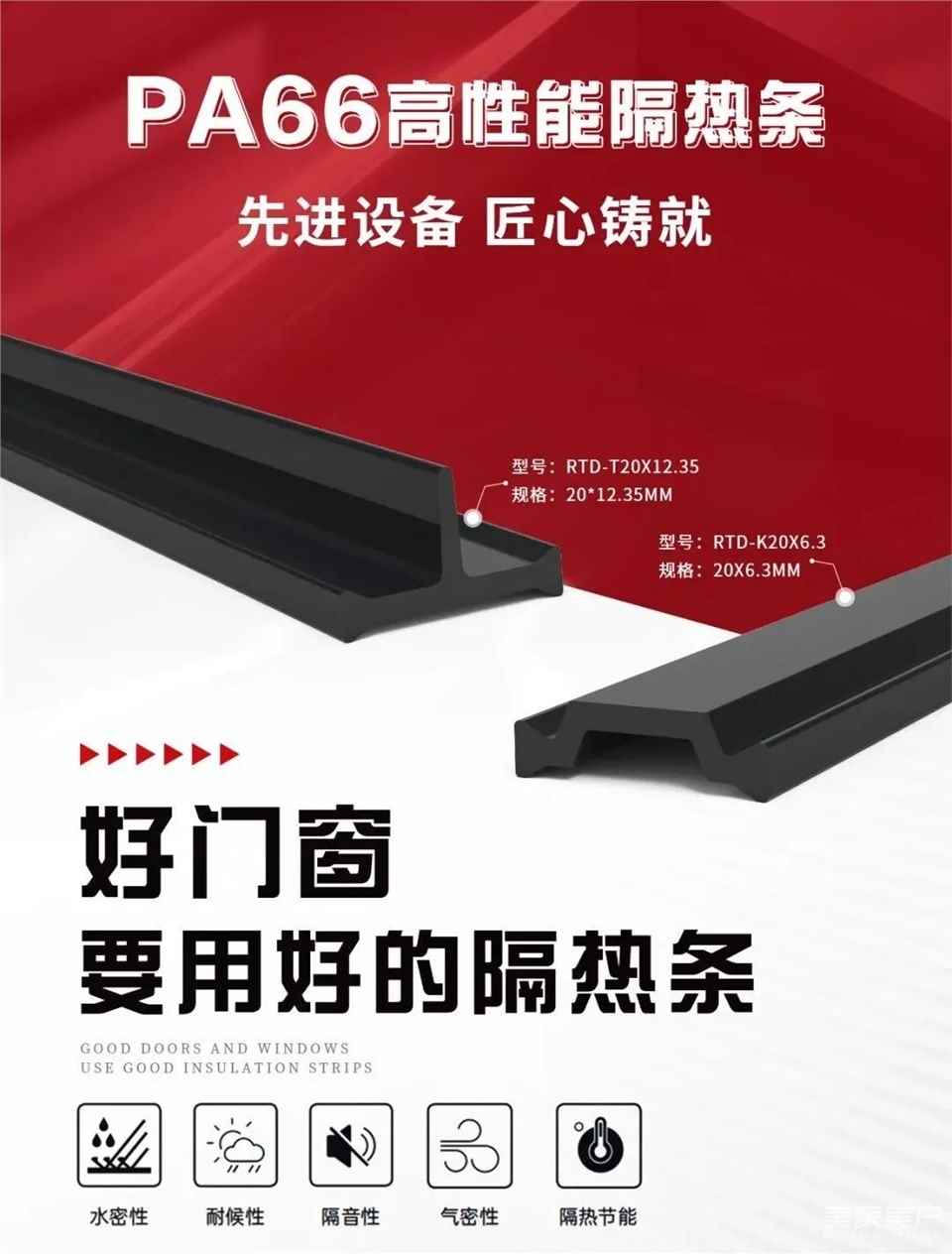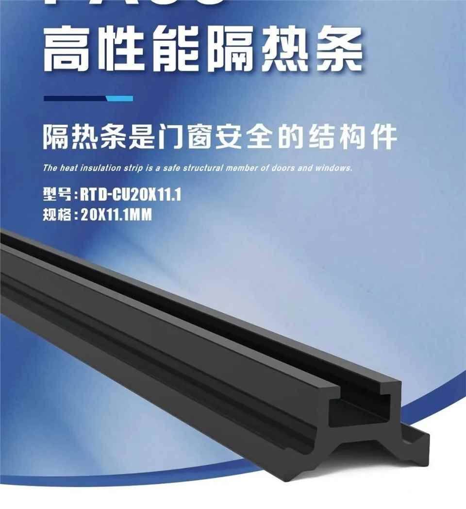 隔热条是隔热型材的核心构件,它既能减少铝型材热量传递,又是隔热型材中的结构连接件,通过它的连接使得隔热型材的三个部分成为一个整体,共同承受荷载,达到更好的隔热保温效果。