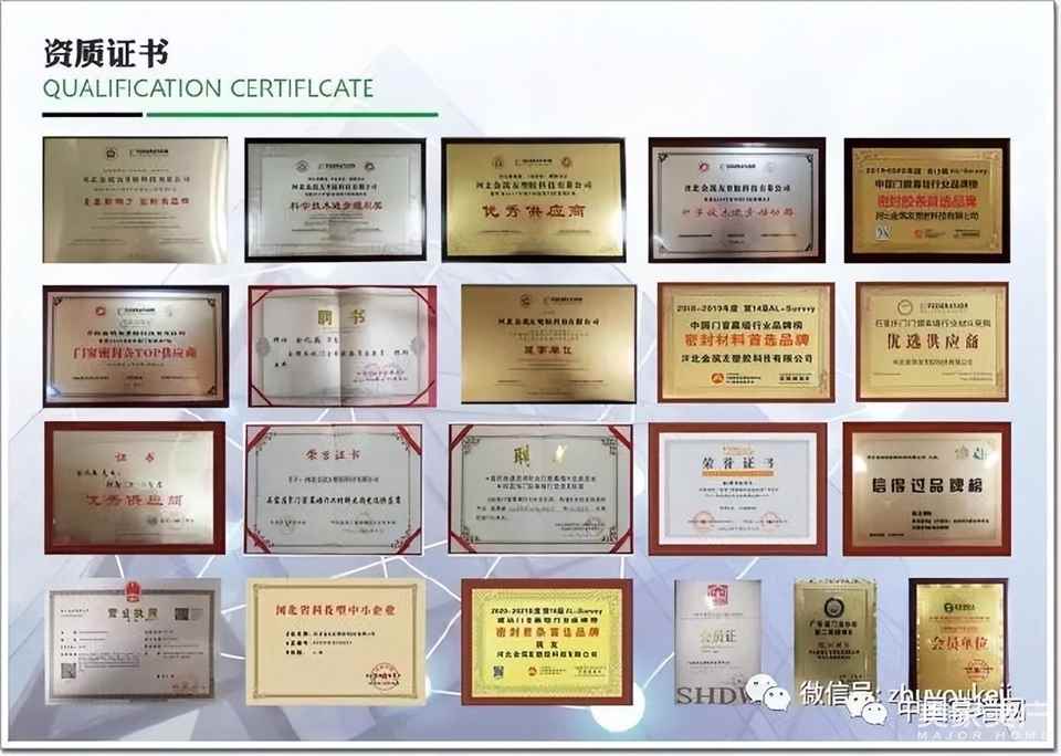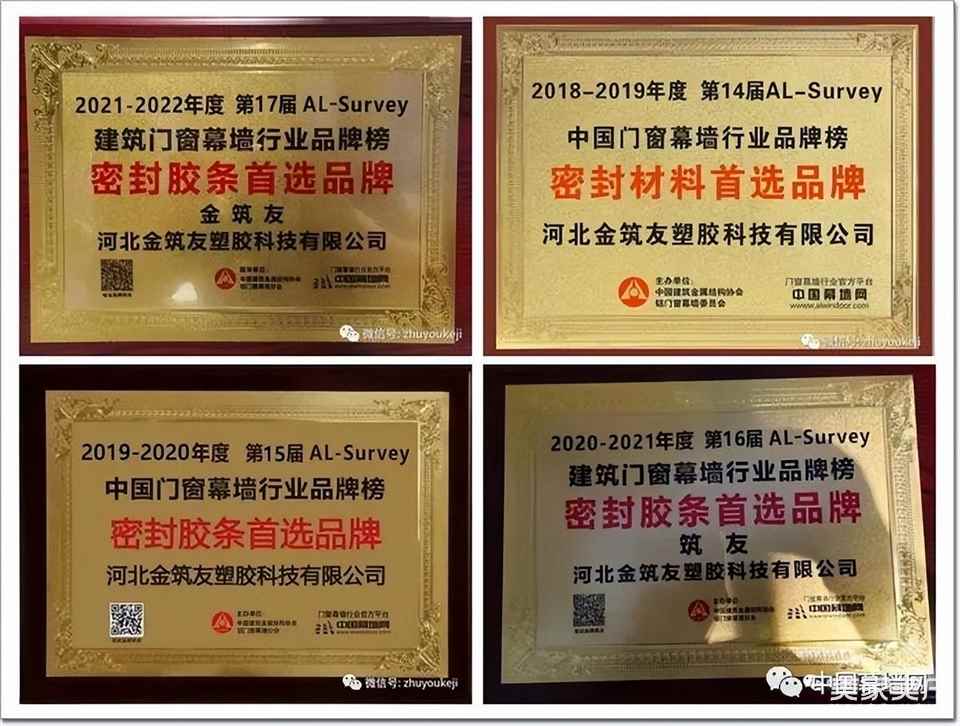 2018-2022年间连续获得由中国金属结构协会,铝门窗专业委员会,中国幕墙网,联合颁发的业内《密封胶条首选推荐品牌》。