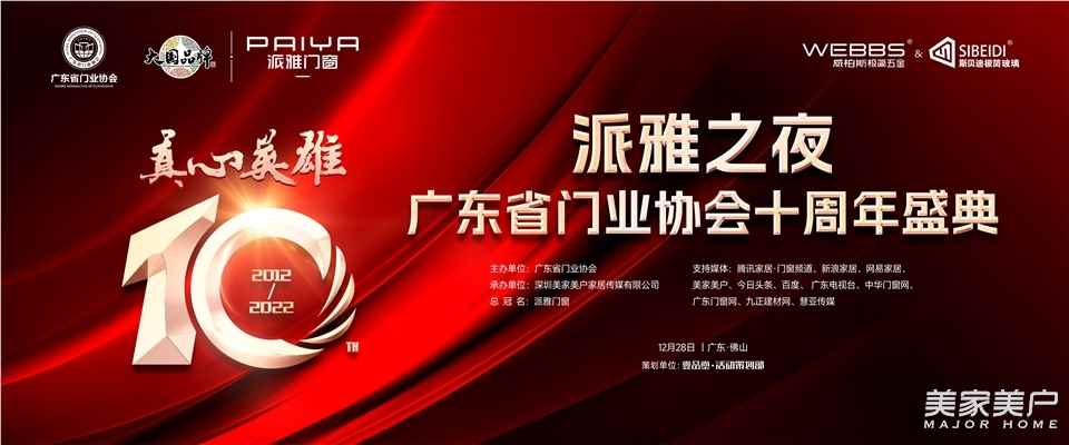 12月28日,由派雅门窗总冠名、“威柏斯&斯贝迪”会议冠名的“2022广东省门业协会年会、‘威柏斯&斯贝迪’2022中国定制门窗高峰论坛暨‘派雅之夜’广东省门业协会十周年盛典”,在佛山金鼎国际宴会厅隆重举行。作为防疫政策全面放开后的首场行业盛典,本次庆典以“真心英雄”为主题,预示着砥砺奋进的门窗人,将以无惧无畏的气魄,告别疫情下的三年阴霾,以昂扬的姿态继往开来,再创辉煌。