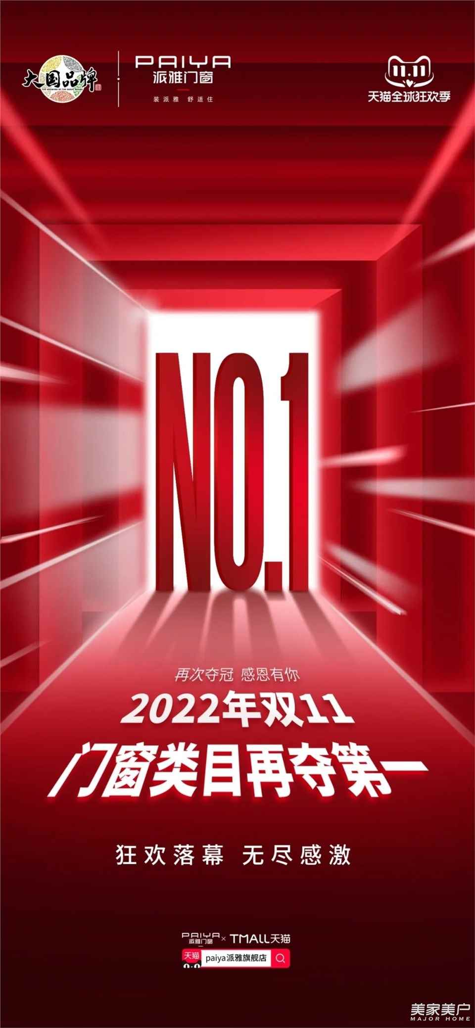 2022年,派雅借助超级IP、事件营销、内容营销、活动营销等多种创新营销方式传播“深舒适”价值理念,持续提升大国派雅的品牌影响力,深化差异化竞争优势,为品牌带来强劲的发展势能。双十一期间,连续两年蝉联天猫门窗类目行业成交榜首。