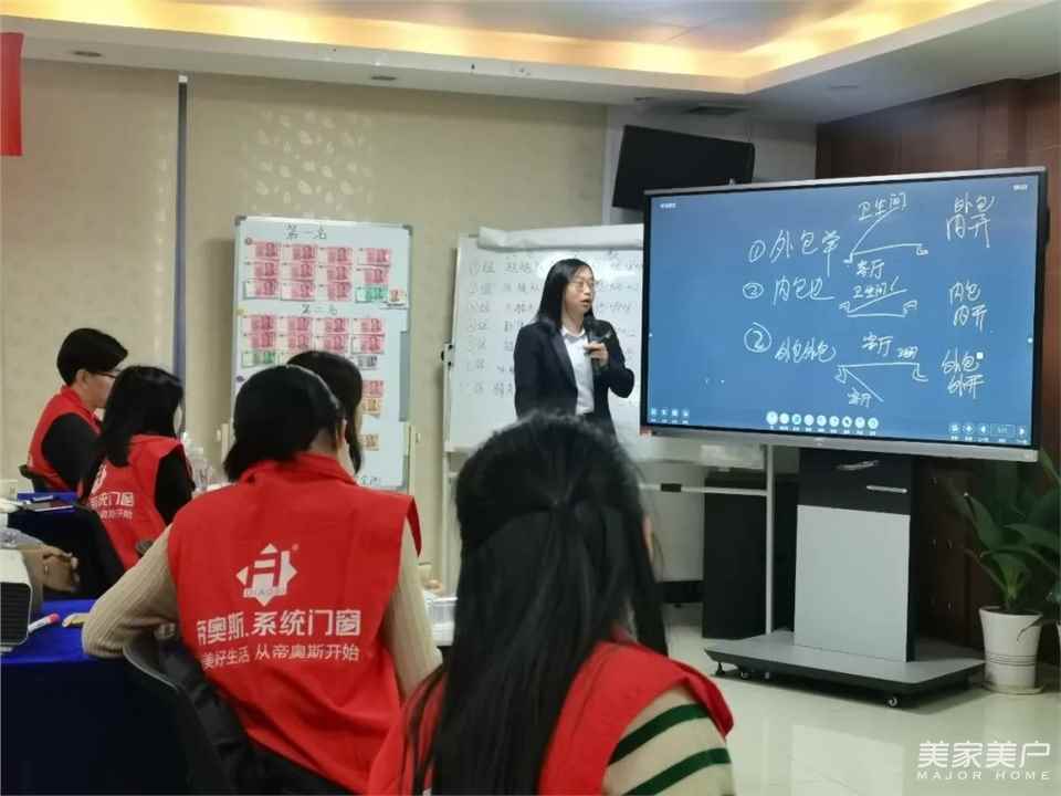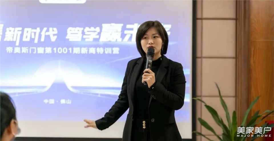 商学院讲师张凤英为新晋经销商家人从公司价值观、愿景、品牌发展等方面向新商们全面展示了公司的立体品牌形象。并从产品卖点和营销技巧,为学员们带来帝奥斯门窗产品体系的讲解。
