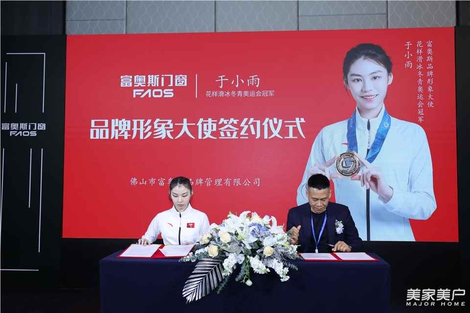 2023年,富奥斯成功签约5位冠军品牌系列代言人。本次峰会,特别邀请冠军代表花样滑冰冬青奥运会冠军于小雨女士莅临现场,与富奥斯董事长潘锡波先生正式签订合约。接下来,冠军团队将与富奥斯同行,推广冠军品质门窗,为品质护航,为实力加冕。
