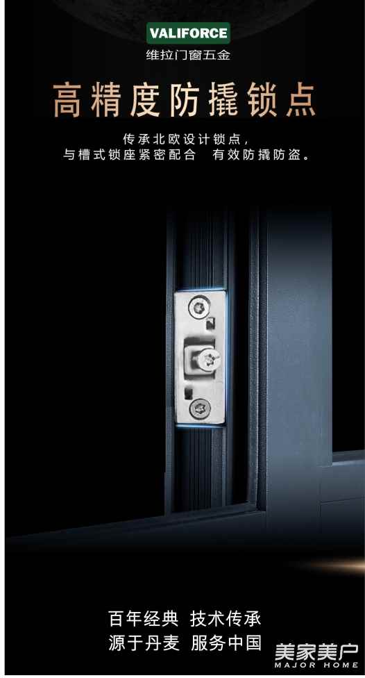 VALIFORCE维拉门窗五金倡导事业共同体,价值共同体,为窗企溢价赋能提供更有竞争力的产品,让终端用户真正享受安全开启,健康美好的安心生活。
