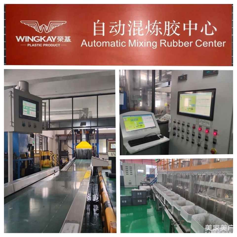 对于生产型企业而言,实现高质量发展,最终拼的是生产。为了更好地满足企业发展和市场的需求,荣基在2022年,对炼胶中心进行焕新升级,引进全自动上辅机及下落式密炼机混炼胶系统,并对该系统进行长达三个月的试运行,于2022年底前通过验证,现已正式投入使用,目前该系统的运行一切正常平稳。全自动上辅机及下落式密炼机混炼胶系统,混炼胶料时间控制更精准、混炼胶质量更好、生产效率更高,能够保证高效率地连续生产。通过引进自动化管理系统,荣基的生产更加精益化、标准化。