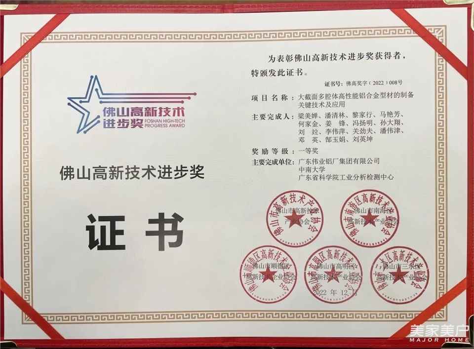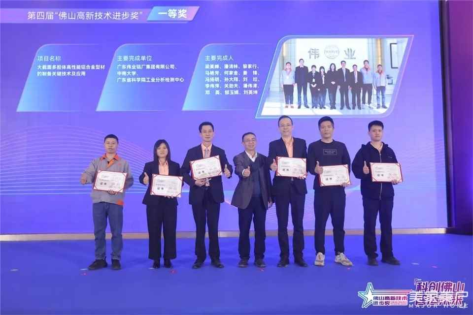本次获高新技术进步一等奖的“大截面多腔体高性能铝合金型材”项目,联合中南大学、广东省科学院工业分析检测中心共同完成。从项目研发到量化应用于交通运输和机械装备,获奖项目形成了一套以伟业铝材为主体,市场为导向、产学研用深度融合的高性能铝合金技术创新体系。