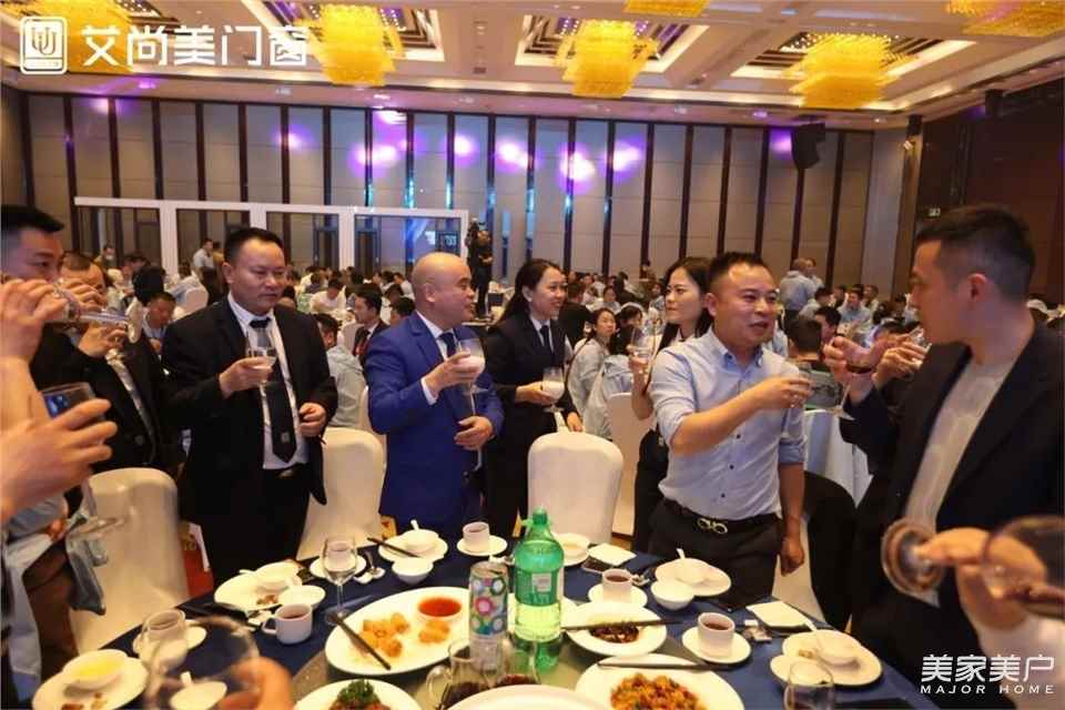 在喜乐晚宴现场,艾尚美门窗主理领导与各行业大咖、媒体朋友等,纷纷举起酒杯,以美酒共祝艾尚美门窗2023业绩翻番,爆品突围、聚势共赢!