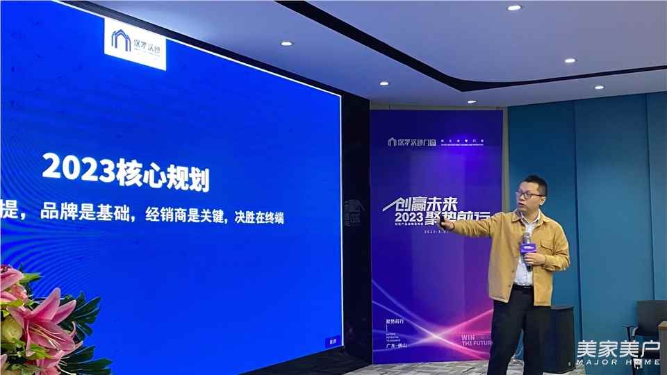 会议伊始,保罗汉纱门窗营销总经理杨烨先生上台致辞,对到场的经销商家人表示衷心的感谢与热烈的欢迎,并对2022年度工作进行了总结以及发表2023年公司核心战略的重要讲话。