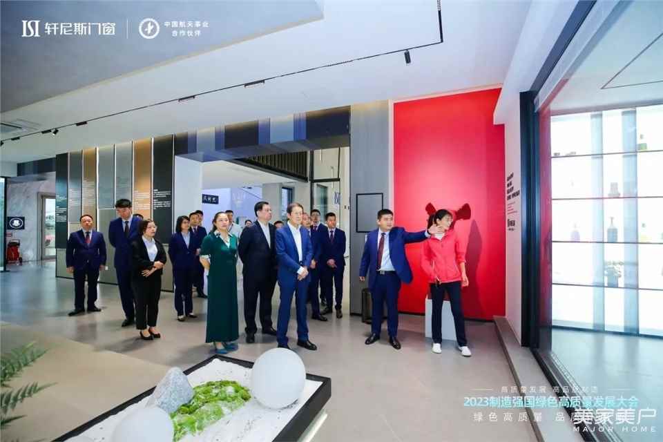 随后,领导一行来到了轩尼斯门窗官窑生产基地,置身于面积约3000㎡的全新升级第六代品牌艺术体验馆,目睹当下行业高性能的门窗产品、智能化技术应用以及人居美学空间,对轩尼斯门窗各项创新技术成果给予了高度评价。