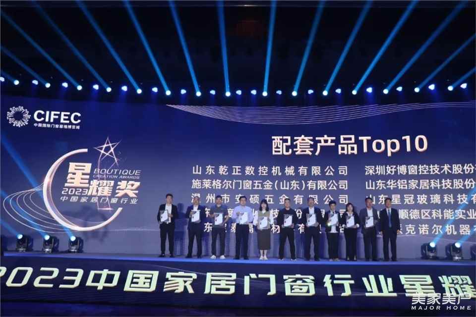华建铝业集团董事长吴维光先生为“星耀奖配套产品TOP10”获奖企业颁奖,他们是: