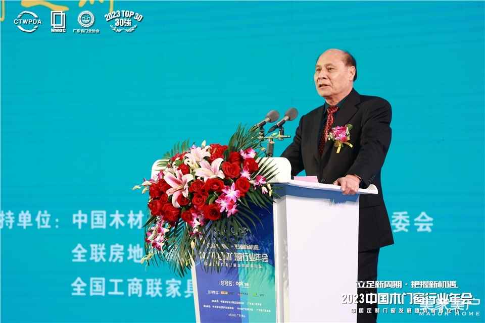 中国木材与木制品流通协会木门窗专业委员会会长、广东省门业协会创会会长、理事长、广东润成创展木业董事长关润开致辞