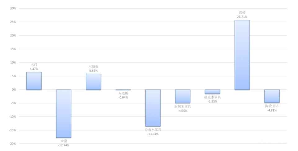 国家统计局数据显示:2022年家具类消费品零售额为1635亿元,同比2021年下降7.5%;建筑及装潢材料类消费品零售额为1911亿元,同比2021年下降6.2%;家用电器和音像器材类消费品零售额8890亿元,下降3.9%。