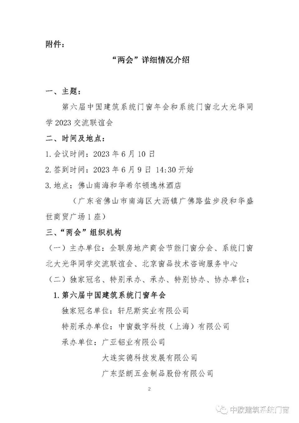 关于邀请出席“第六届中国建筑系统门窗年会和系统门窗北大光华同学2023交流联谊会”的函