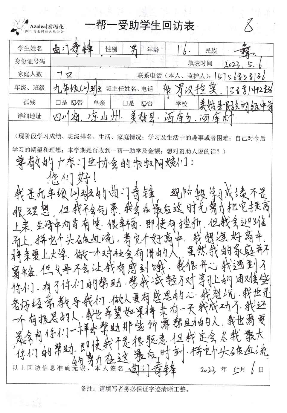 2022年党支部赴大凉山帮扶——走访曲门春锋家