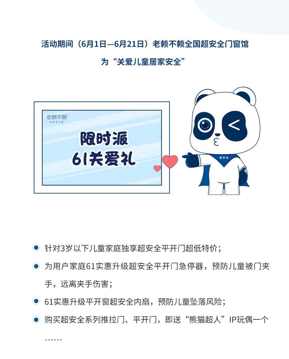 6月1日,是老赖不赖超安全门窗品牌日——61超安全门窗日 ,为“关爱儿童居家安全”切实在行动,超安全产品惠及亿万用户家庭。