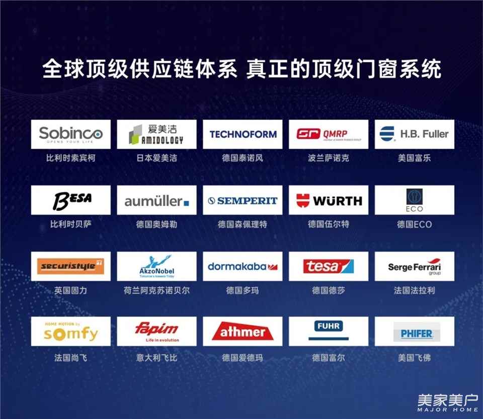 拥有系统窗、系统门、阳光房三大产品体系,整合德国森佩理特、比利时索宾柯等20多家全球顶级高端系统门窗供应链。