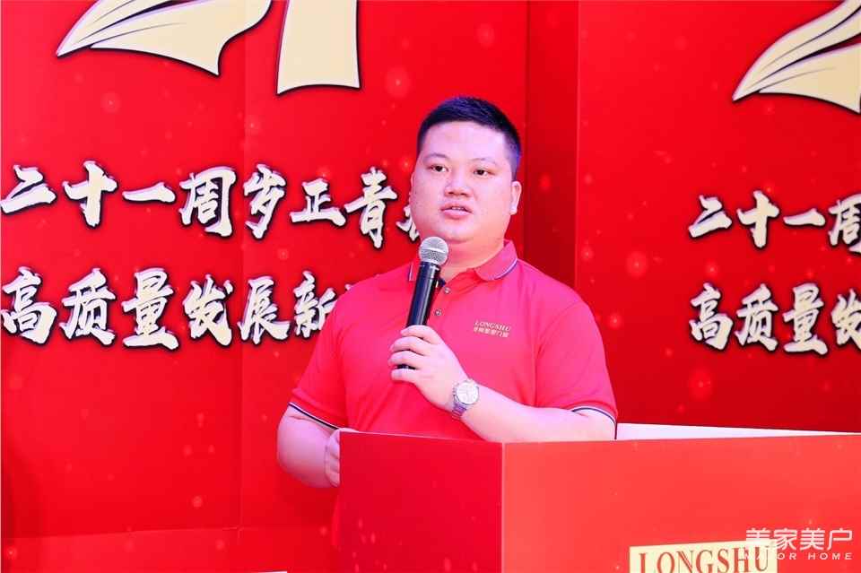 龙树实业集团董事长邓树生首先致辞:二十一年坚持不懈的奋斗至今有了龙树这个大家庭。从五人小厂开始起步,历经21年岁月,龙树集团已发展成为集研发、生产、销售、服务为一体的综合性门窗企业,拥有三个生产基地,龙树品牌先后于中央电视台、南方电视台,湖南经视、江西经视等地方电视台,腾讯、新浪、百度等主流新媒体投放广告,聘请影视明星任天野为龙树整屋门窗品牌形象大使。