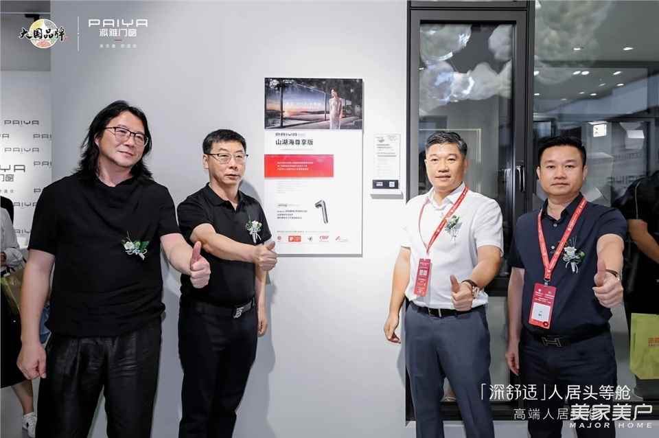 新品发布环节,派雅门窗董事长李钧洪、副董事长李钧海携手广东省家居业联合会执行主席蒋德辉、麦智传扬董事长方棱联合为派雅MS级山湖海尊享版进行新品揭幕,重新构建未来高端人居新标准。