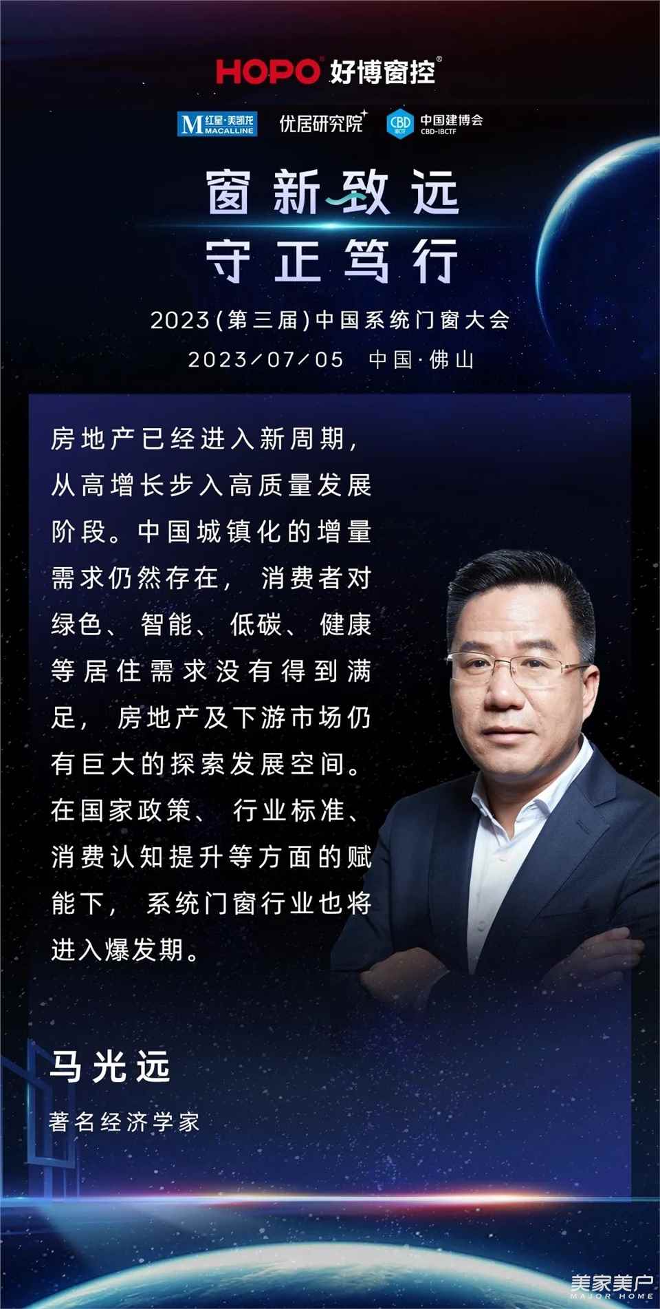 特邀嘉宾著名经济学家马光远从当下中国城镇化增量需求仍然存在出发,指出消费者对绿色、智能、低碳、健康等居住需求暂未得到满足,在多方赋能下,系统门窗行业即将进入爆发期。