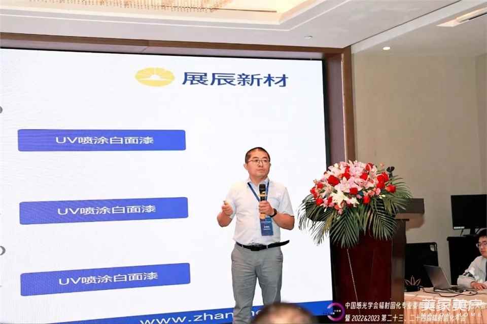 大会为全体参会者提供了技术交流与商务洽谈的平台。来自国内外辐射固化相关领域的专家、学者、企业家充分交流探讨。期间,珠海展辰新材料股份有限公司技术管理中心总经理助理王向科先生为大家带来《木器涂料环保涂装系列—UV涂料解决方案》的主题演讲,分享经验心得!