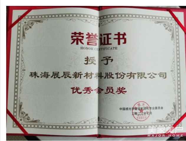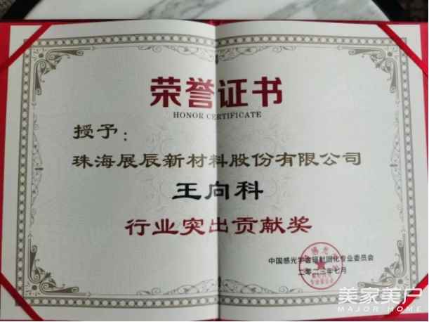 本次大会为莅临现场的优秀企业及个人颁发了荣誉证书,珠海展辰新材料股份有限公司作为家具涂料行业唯一代表荣获企业成长奖、优秀会员奖;同时,大会还授予珠海展辰新材料股份有限公司技术管理中心总经理助理王向科先生行业突出贡献奖,以表彰其在辐射固化涂料领域的杰出贡献,对展辰多年来在辐射固化领域技术创新、产品研发、市场拓展等方面贡献表示肯定。