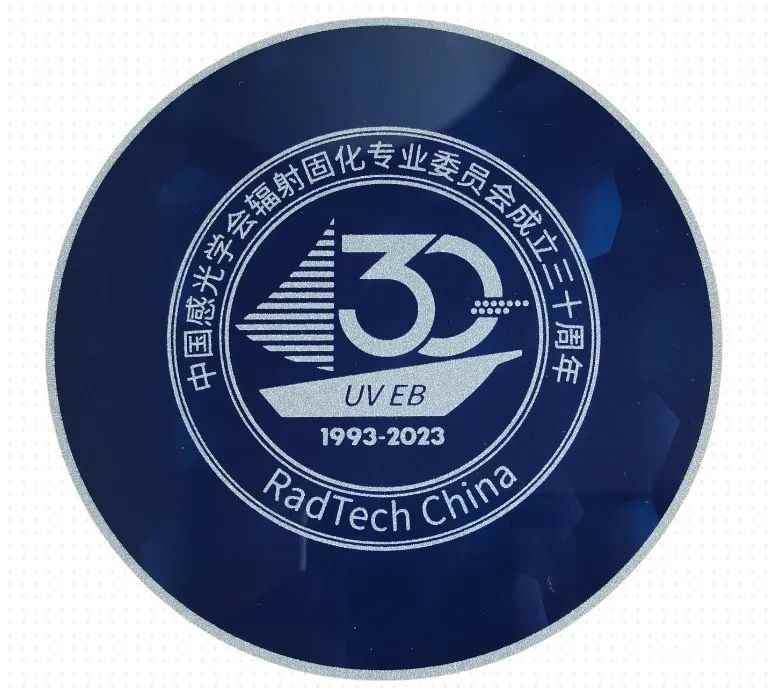 —展辰主导设计中国感光学会辐射固化专委会30周年纪念徽章—
