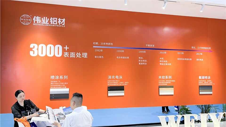 值得一提的是,伟业新品的表面处理工艺——消光电泳和氟碳喷涂。今年,伟业在广东地区进行了大量试验,在工艺上取得突破性进展。这次展会上,伟业新品的“高颜值”,吸引了众多观展客商的关注。