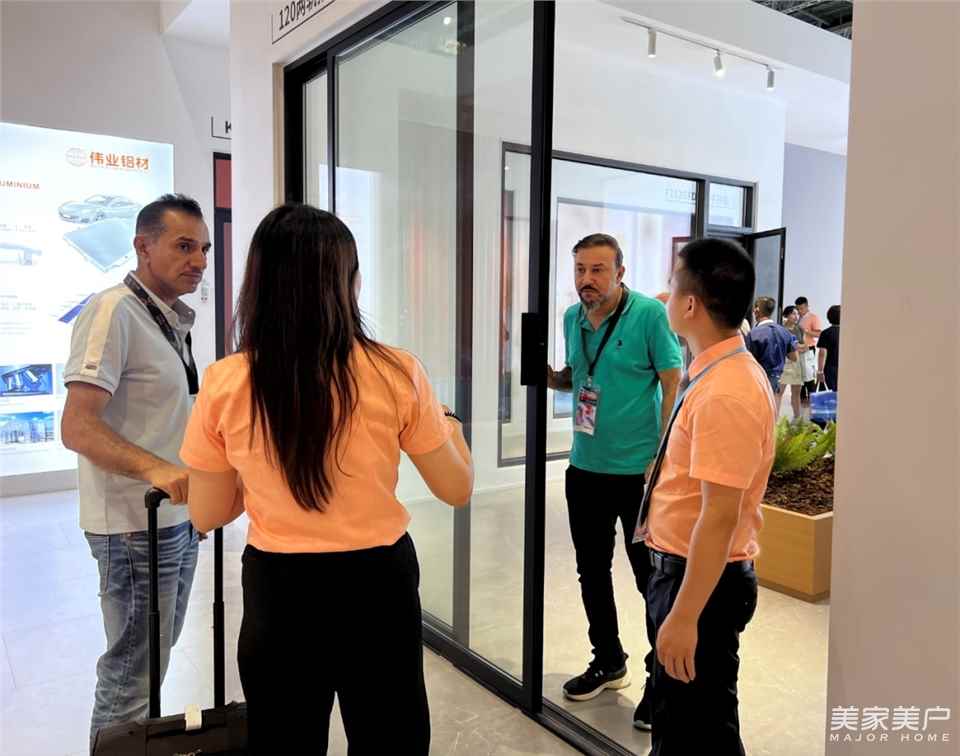 从工艺创新到品质领先,从产品设计到空间展示,伟业铝业吸引了大批观众参观品鉴。看一看、摸一摸、聊一聊……活动现场络绎不绝,伟业营销团队以专业的职业素养与耐心细致的讲解方式,让现场的国内外客户全方面感受到伟业品牌的优势与实力所在!