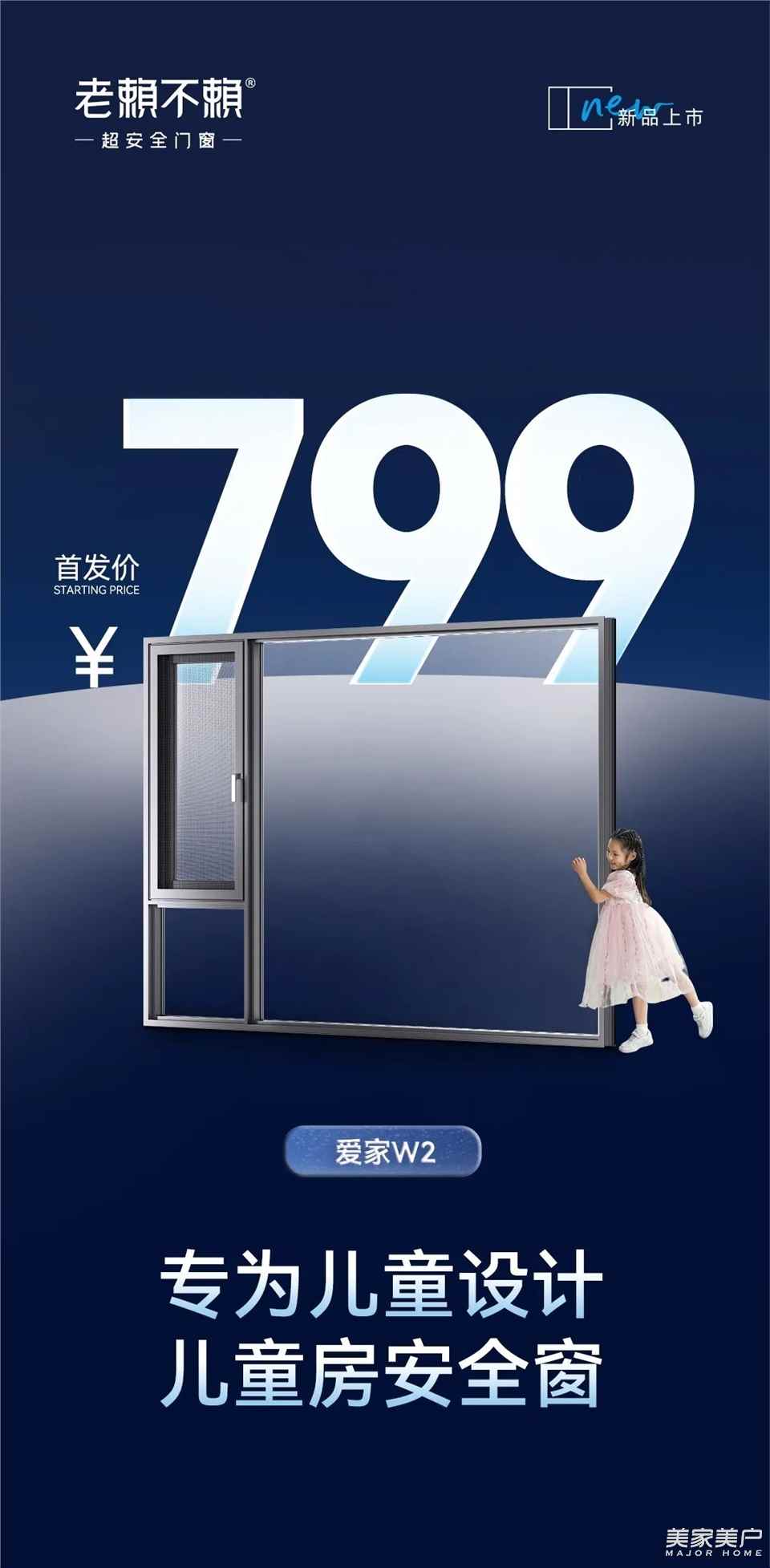 为积极响应商务部“消费提振年”系列活动的号召,老赖不赖超安全门窗特别推出儿童房安全窗【爱家W2】新品799元普惠上市,专为儿童设计。