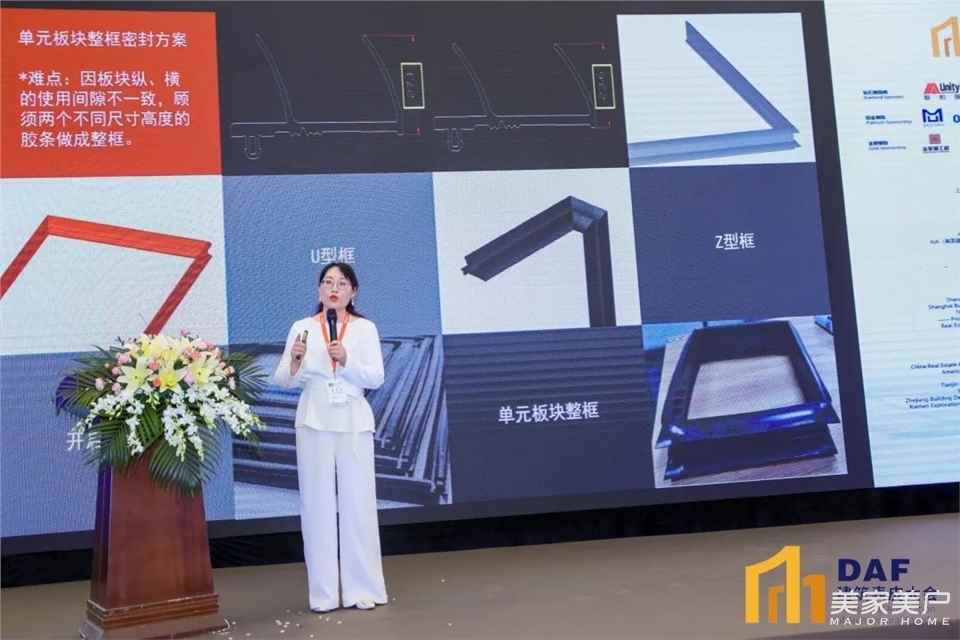 在展会同期举办的2023亚洲建筑表皮设计与应用国际大会(简称:上海DAF大会)上,荣基总经理刘进容,以“整体耐用,才有作用”为主题,为现场嘉宾分享了荣基坚持27年“只做好胶条”的经营理念。