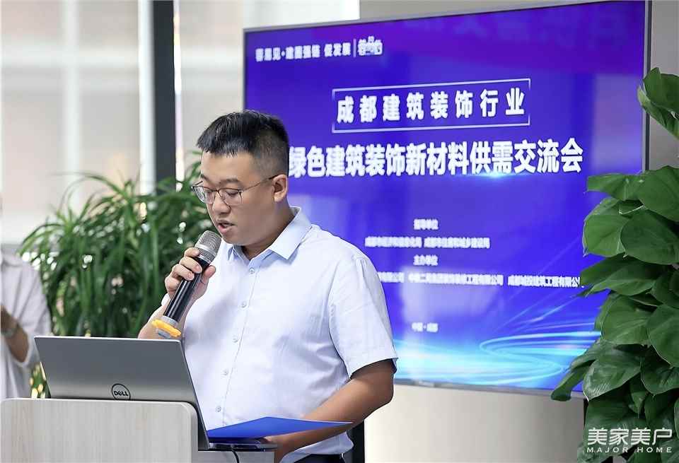 成都建工装饰、中铁二局装饰、成都城投建工的代表分别就企业品牌、年度项目清单以及材料供应企业入库流程等内容进行了介绍,并邀请与会材料供应企业加强合作交流,携手发展。