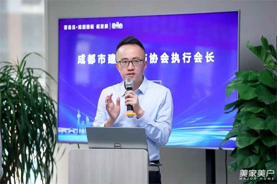 成都建工装饰党总支部书记兼董事长赖晓东首先表达了对参会领导、行业同仁的欢迎,并提到作为成都装协的会长单位,长期以来和协会共同密切关注着企业发展、行业趋势。希望通过本次活动为企业搭建交流互动平台,以集中力量解决市场上的瓶颈问题,促成供需协作机会,助力企业发展。