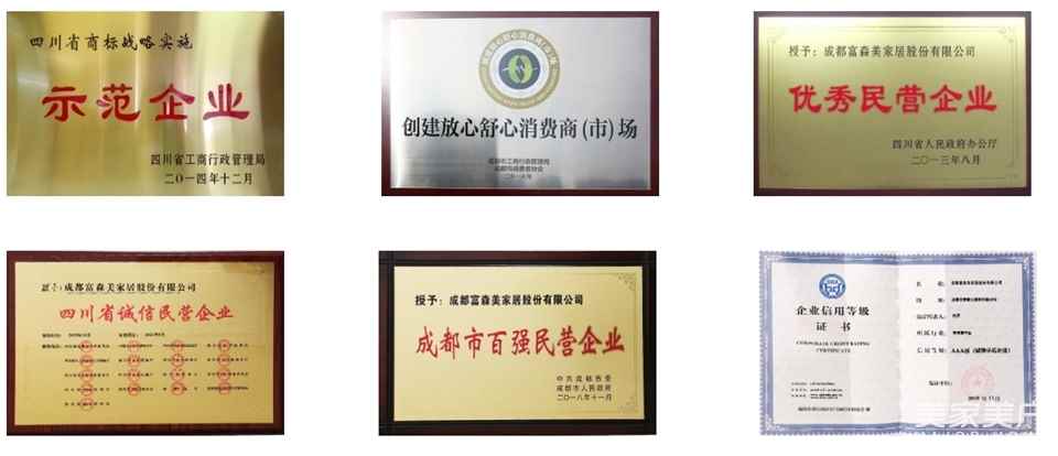 秉承“创行业一流、做百年老店”的愿景,富森美坚持以创造共赢为目标,以品牌运营为核心,以营销服务为支撑,以价值链管理为根本,以产业聚合和业态创新为方式。通过二十多年发展,富森美现已拥有富森美装饰建材总部、富森美建材馆、富森美家具馆、富森创意中心、富森美天府等自营商业旗舰和富森美泸州店、富森美自贡店、富森美眉山店等委管商业卖场,并被中宣部等八部委联合授予“全国百城万店无假货示范市场”、四川省人民政府授予“四川省优秀民营企业”、成都市人民政府授予“突出贡献民营企业”等荣誉称号。