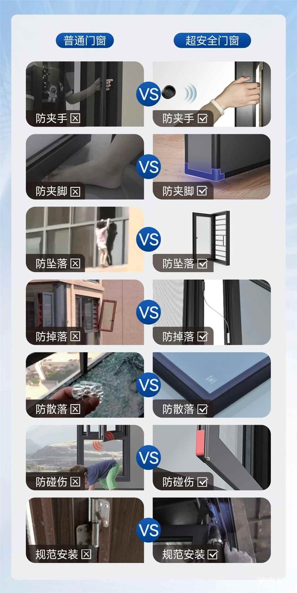 普通门窗,往往只关注材料、价格,通常其性能、品质参差不齐,容易忽略用户的真实需求,例如:儿童居家安全的需求。