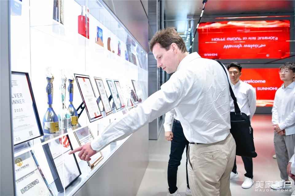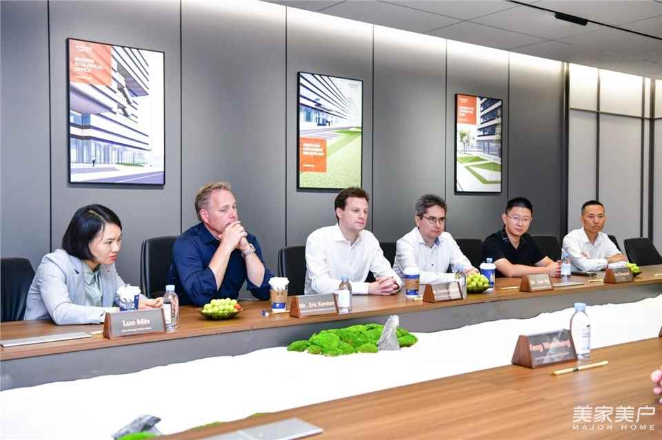 在参观新豪轩智能化展厅过程中,Christian Hoppe在新豪轩高层陪同下全方位体验了智能家居的魅力。全屋智能门窗的一屏控制、语音操作的便捷省心让Christian Hoppe赞叹不已,感慨新豪轩的产品创新速度已超乎他的想象。