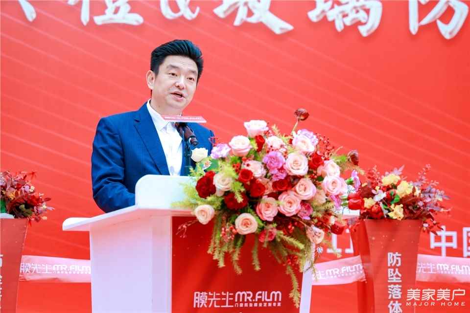 佛山市膜先生新材料科技有限公司董事长王浩杰致辞,并介绍了膜先生玻璃隔热防坠落新品的创新优势。随着高层建筑的增多,玻璃坠落伤人事件时有发生,特别是在台风、暴雨等恶劣气候下,更增加了玻璃坠落的风险。膜先生推出的玻璃隔热防坠落安全门窗膜,以门窗玻璃防坠落为核心,以技术创新为导向,提升了门窗产品的安全性能,为门窗产品的安全起到了保驾护航的作用。因为安全,才是门窗最重要的。