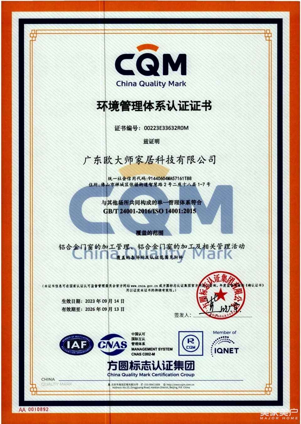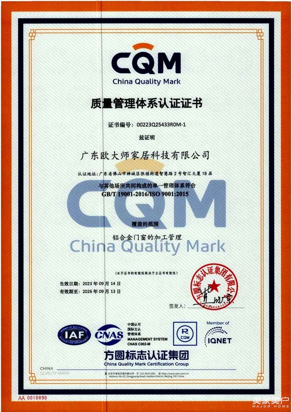 欧大师隔热门窗自创立之初便引进工业4.0智造系统,结合完整细致的工序流程,引领门窗行业向专精特新发展。此次成功入库科技型中小企业以及荣获 ISO三大管理体系认证证书,既照亮了欧大师隔热门窗未来前进的道路,也鞭策欧大师隔热门窗继续秉持着“守护生活温度,贡献低碳世界”的使命。