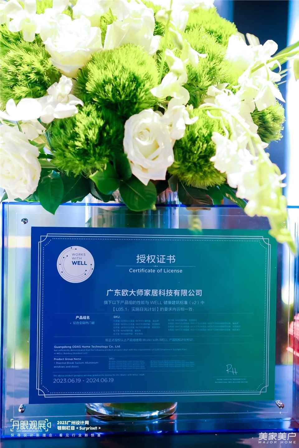 每一扇窗都承载着我们对用户的爱和世界的善意。欧大师隔热门窗旗下的产品组(铝合金隔热门窗)经过第三方独立审核,符合WELL 健康建筑标准中“光”概念的相关要求。国际WELL建筑研究院(IWBI)亚洲区副总裁张为舜先生将欧大师的Works with WEII授权证书交到欧大师总经理陈美红女生手中,标志着欧大师隔热门窗Works with WELL健康旅程正式启动!