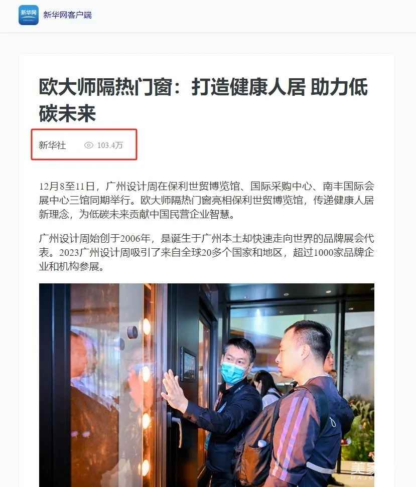 回顾展会盛况,欧大师隔热门窗怀抱着对低碳人居生活的热忱,以极高的人气为观展的客商呈现了一次低碳生活、健康人居盛宴,成为了展会的焦点。此次,还登上新华社、新华网国家级媒体平台,实力刷屏央媒!