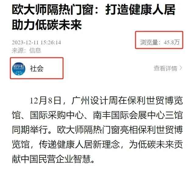 择高而立,向远而行。此次2023广州设计周,各大媒体对欧大师隔热门窗的关注和报道,不仅是对欧大师隔热门窗隔热理念和创新技术的认可,更是对其社会责任和行业影响力的肯定。