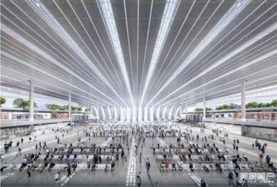 不仅如此,白云站也是全国首个在铁路正上方上盖开发的站房。为了从传统的站房雨棚区域转化为凌空的商业建筑,中铁建工集团项目团队在广州白云站的建设中,采用铁路上盖开发“造地”技术。此次“造地”面积约为6.8万平方米,是由276根直径1.65米的实心混凝钢柱支撑起的重达28万吨的上盖盖板。