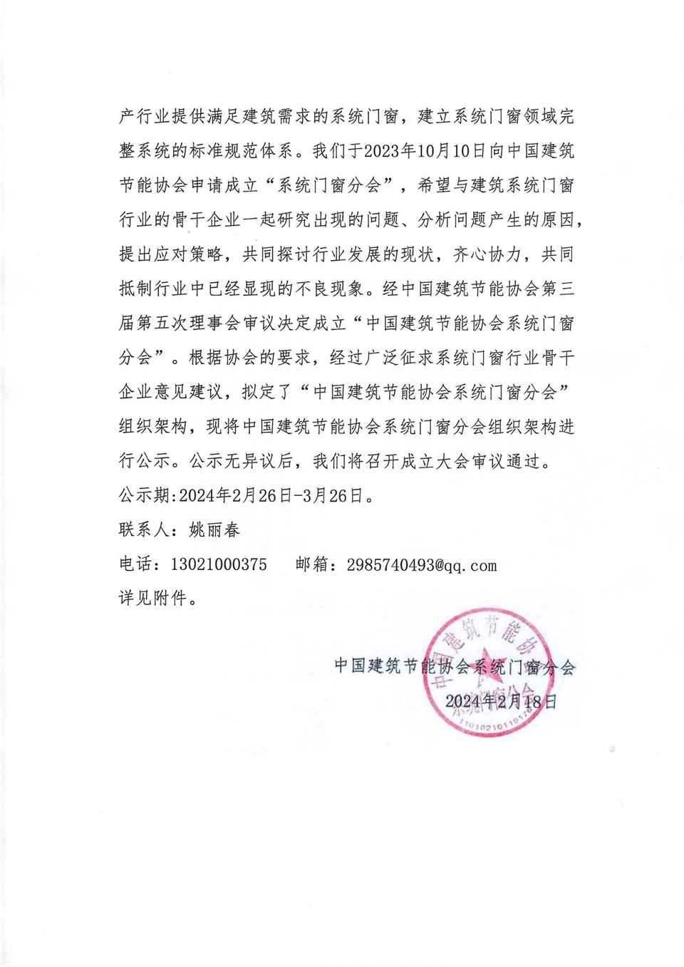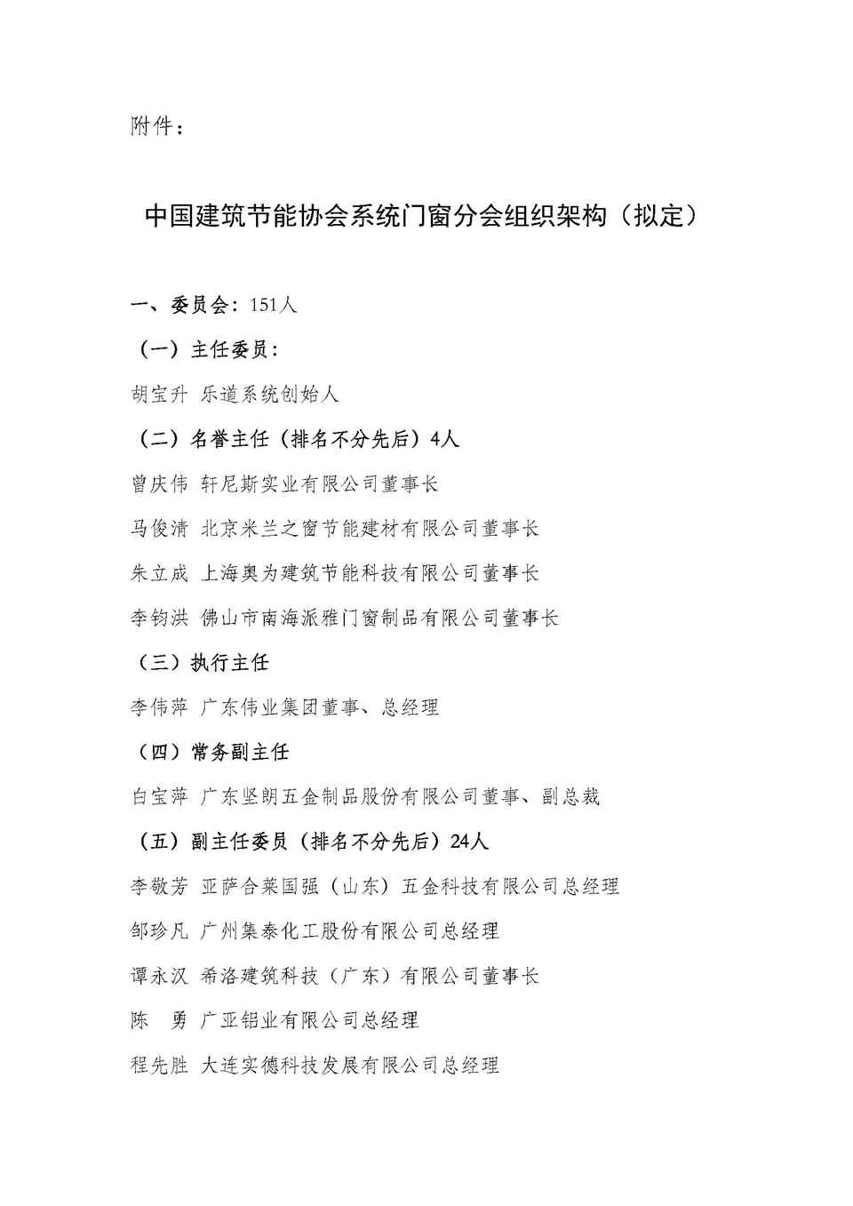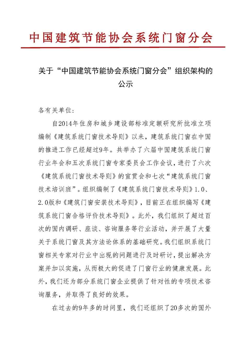 关于“中国建筑节能协会系统门窗分会”组织架构的公示
